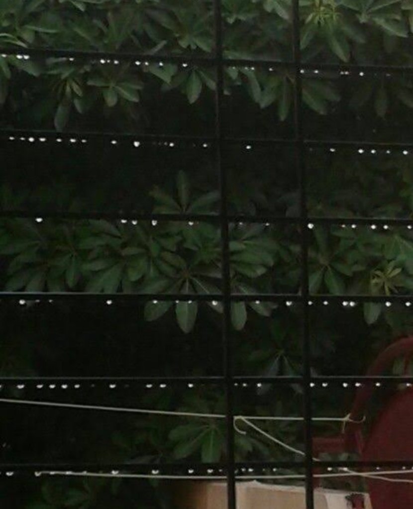 Tapered with rain droplets,
